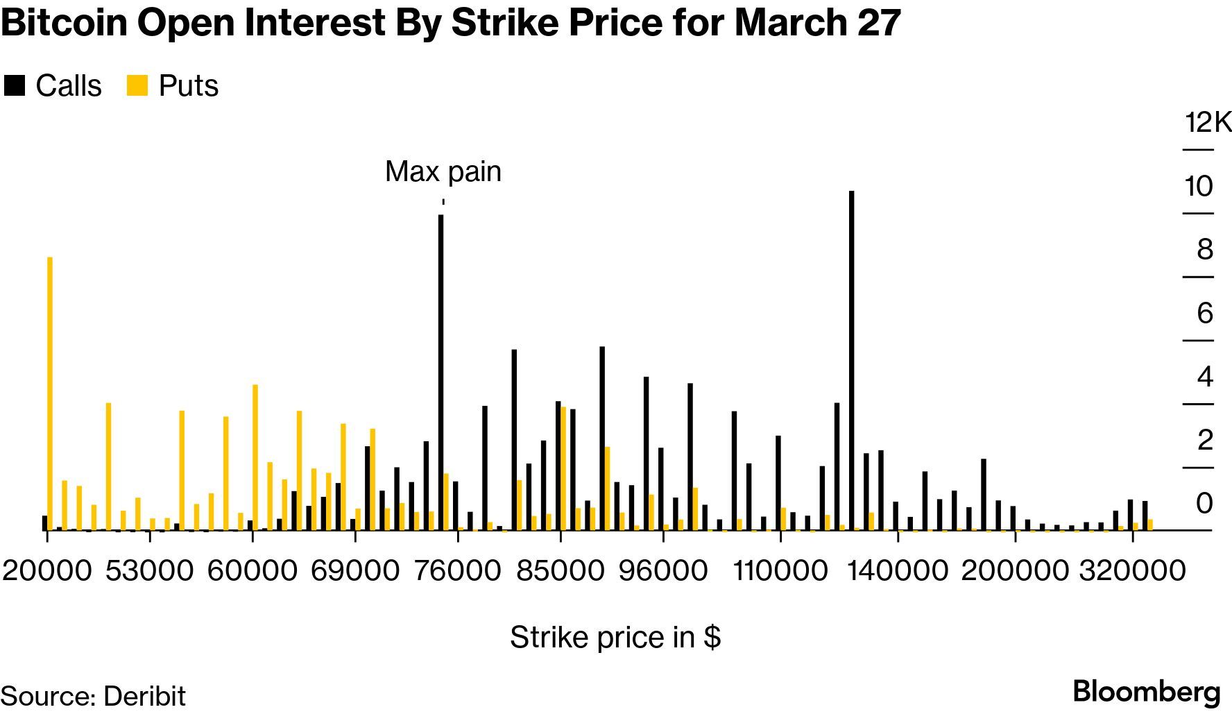 Bitcoin Open Interest By Strike Price for March 27 (Source: Bloomberg)