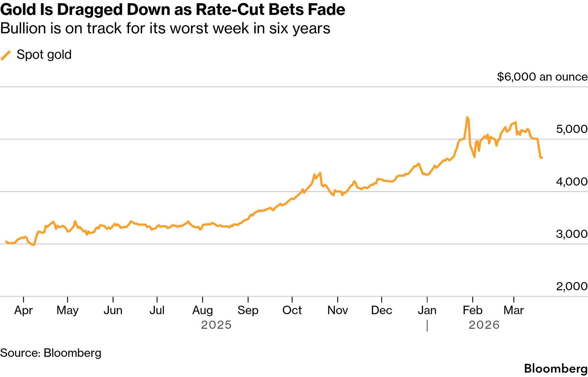 Gold Is Dragged Down as Rate-Cut Bets Fade (Source: Bloomberg)