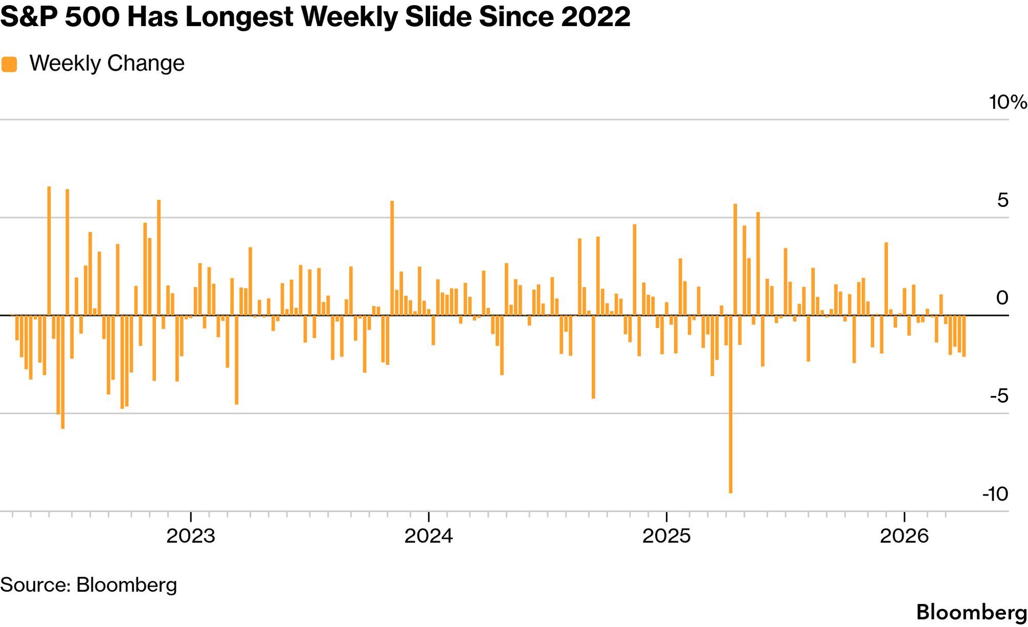 S&P 500 Has Longest Weekly Slide Since 2022 (Source: Bloomberg)