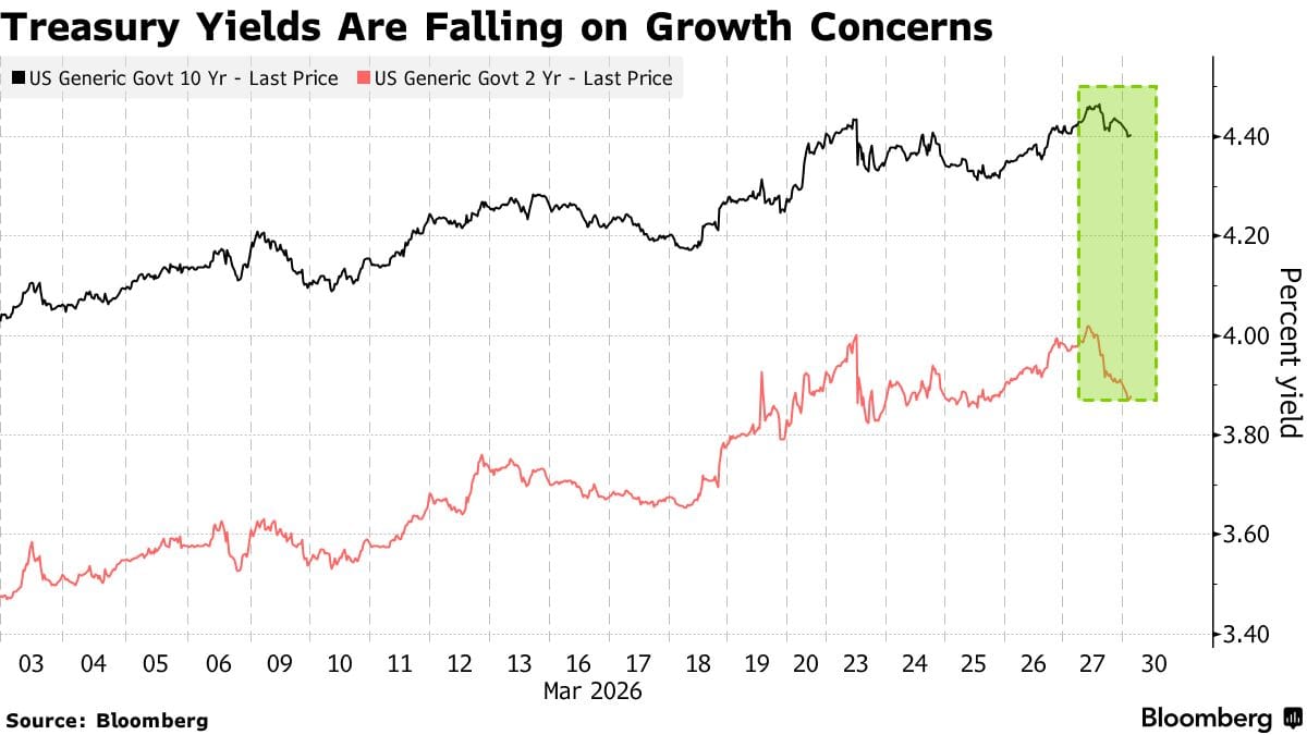 Treasury Yields Are Falling on Growth Concerns (Source: Bloomberg)
