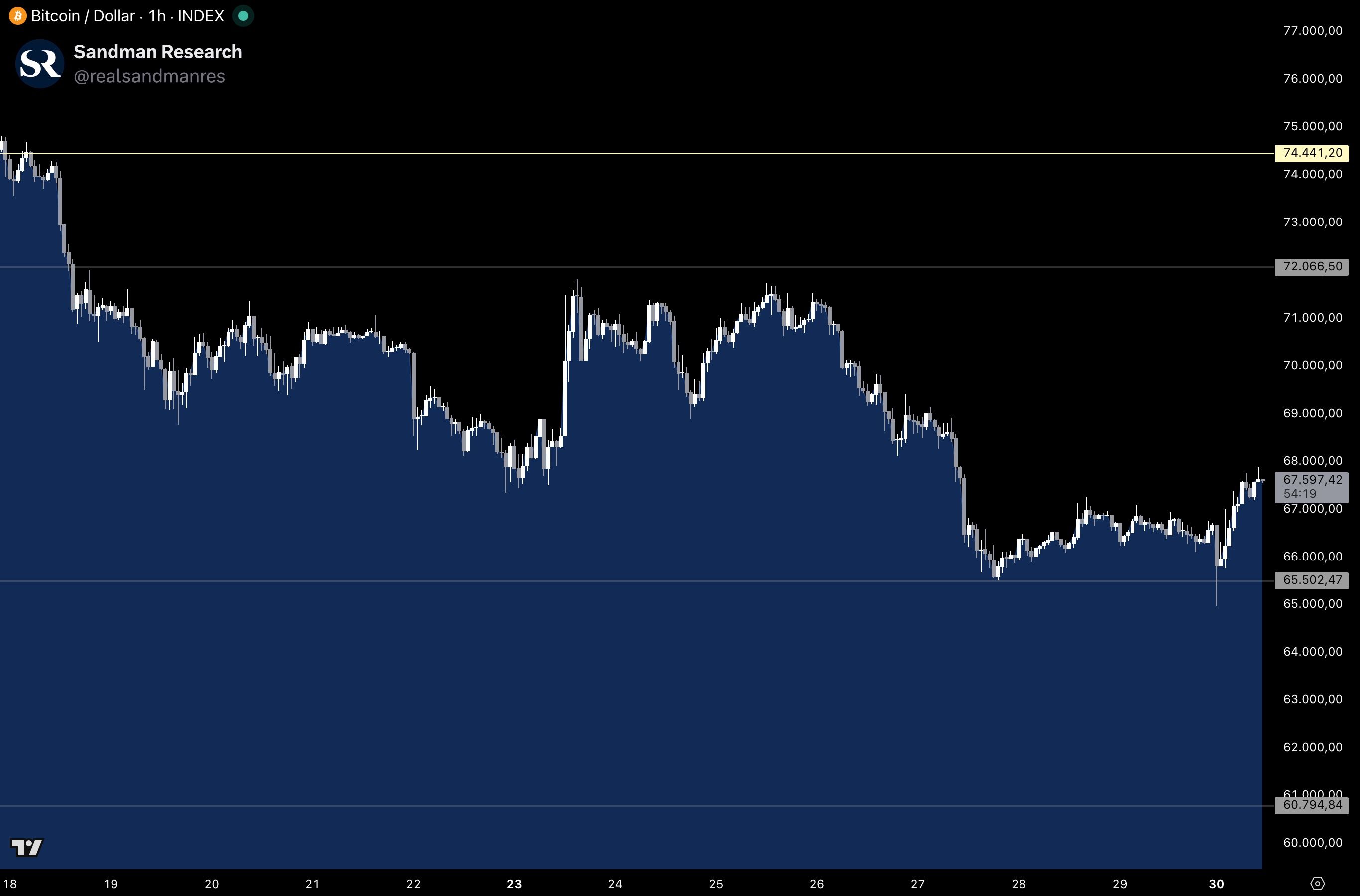Markets head into the final stretch of Q1 under sustained pressure, with Bitcoin locked between $65,500 support and $72,000 resistance, unable to reclaim the $80,000 level that defined last year’s structure. At the same time, equities are flashing warning signals with five consecutive weekly losses, recession probabilities are rising sharply, and geopolitical tensions continue to drive inflationary pressures through higher energy prices.