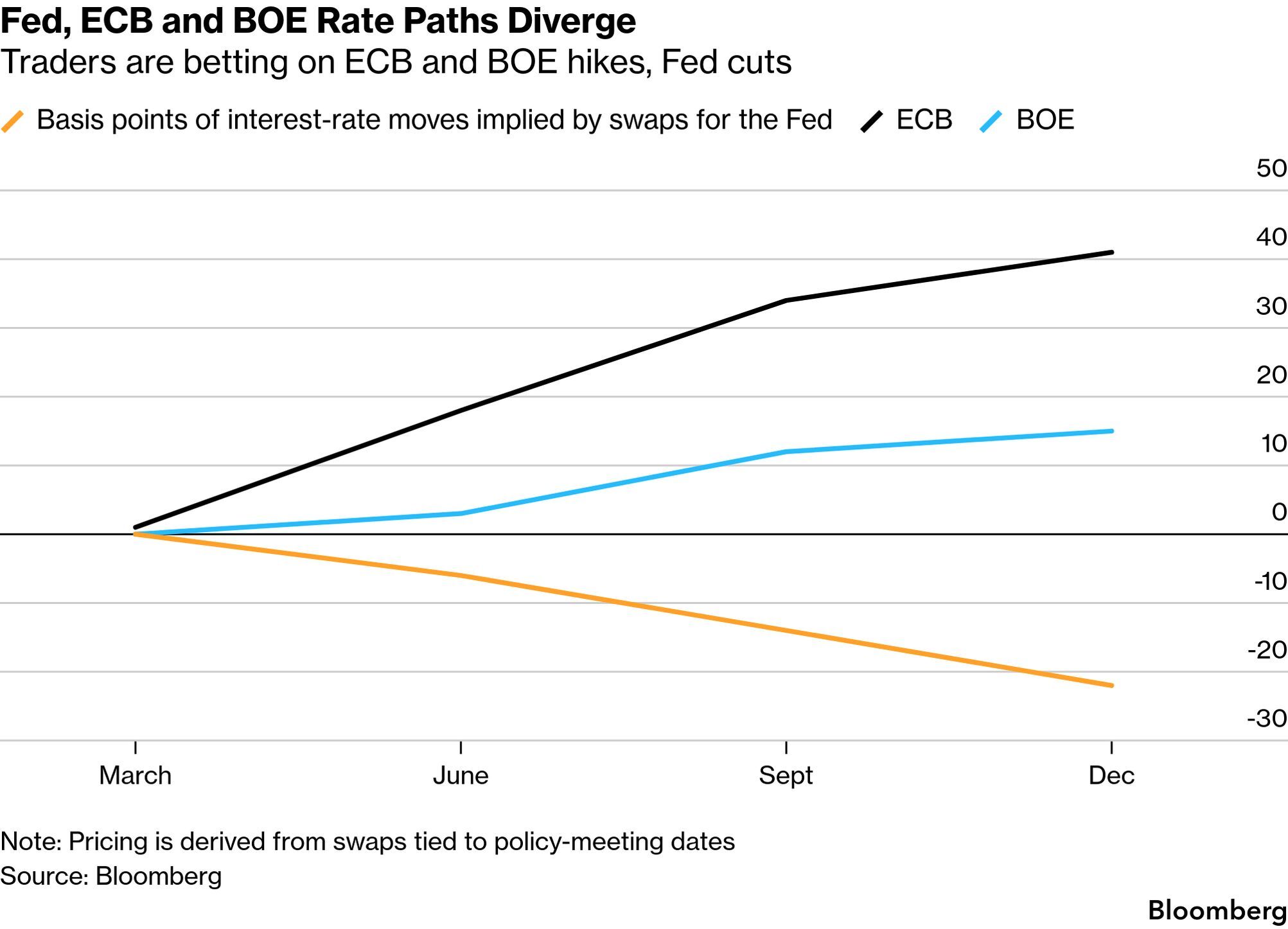 Fed, ECB and BOE Rate Paths Diverge (Source: Bloomberg)