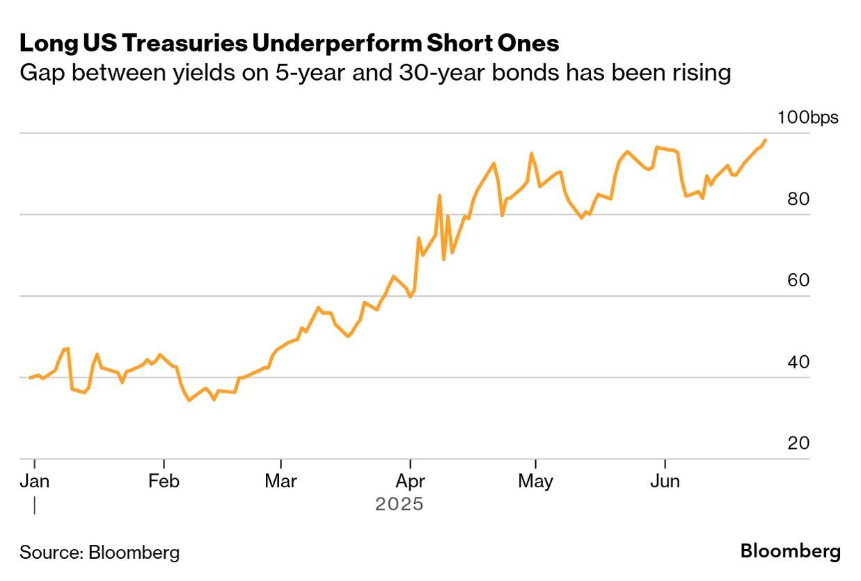 Long US Treasuries Underperform Short Ones (Source: Bloomberg)