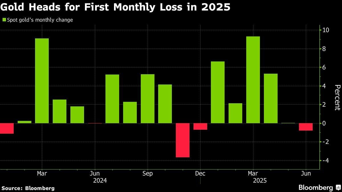 Gold Heads for First Monthly Loss in 2025 (Source: Bloomberg)