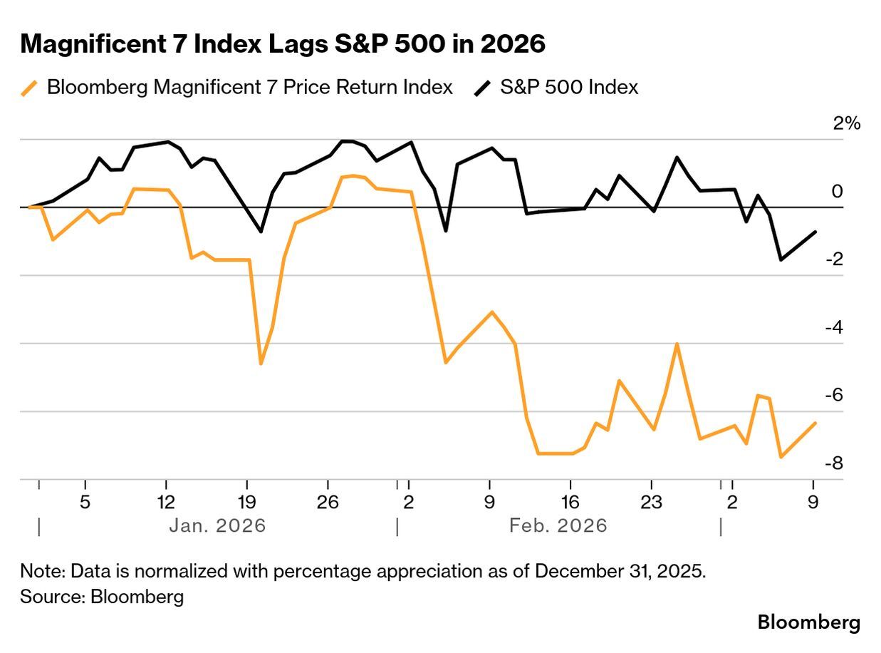 Magnificent 7 Index Lags S&P 500 in 2026 (Source: Bloomberg)