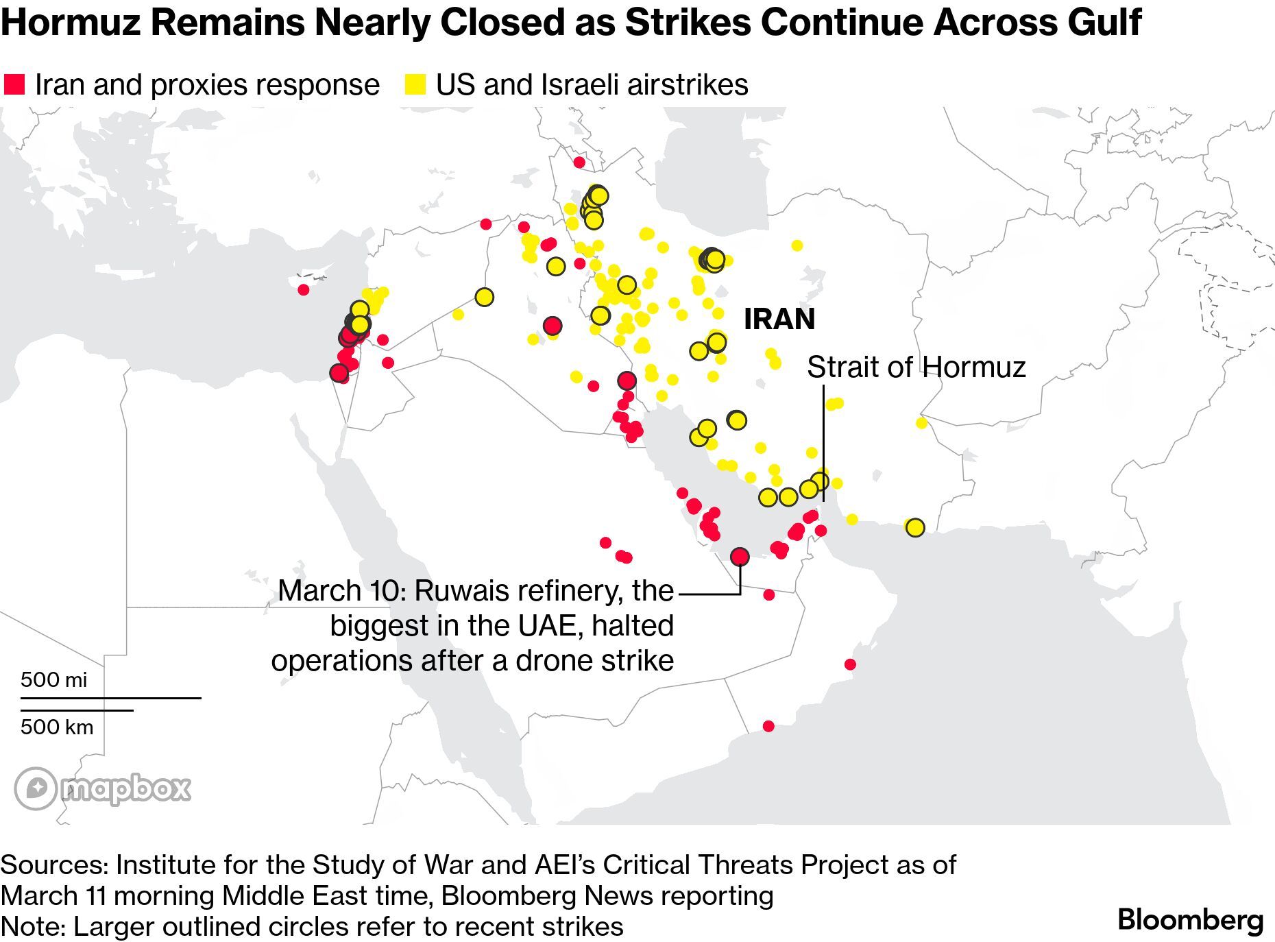 Hormuz Remains Nearly Closed as Strikes Continue Across Gulf (Source: Bloomberg)