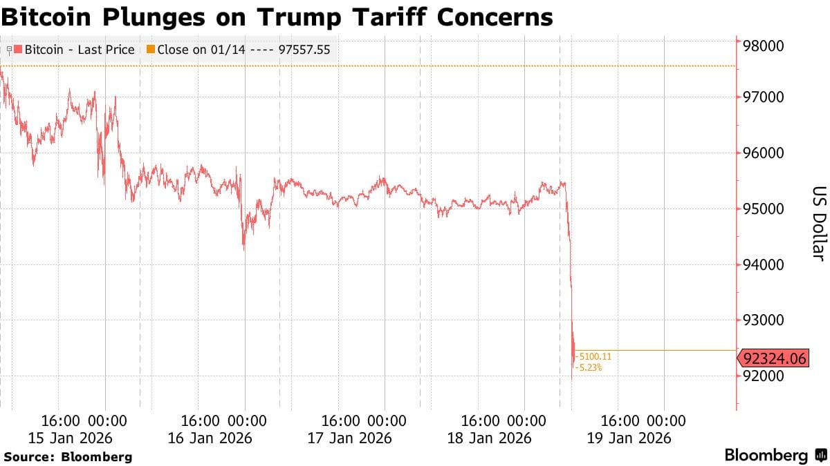 The weekend brought an unexpected geopolitical jolt: Trumpâs ultimatum tied to Greenland sent markets into a sharp risk-off rotation. Bitcoin plummeted immediately but found support right at our key technical level of 92,000, as highlighted last week.