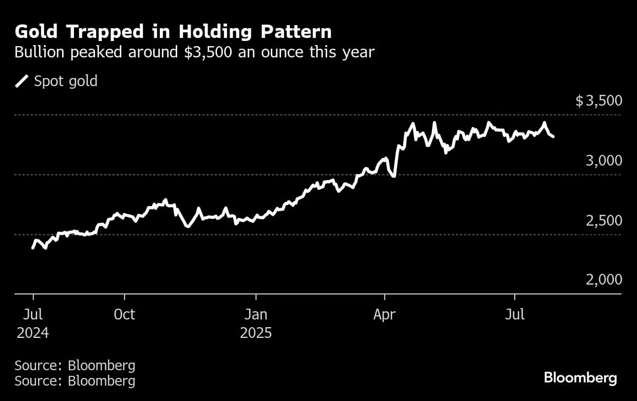 Goldâs price action has underwhelmed. After peaking near $3,500/oz earlier this year, it has moved sideways, failing to sustain any breakout despite rising inflation expectations and macro uncertainty. This lack of follow-through contrasts sharply with Bitcoinâs strength in the same environment./hq1