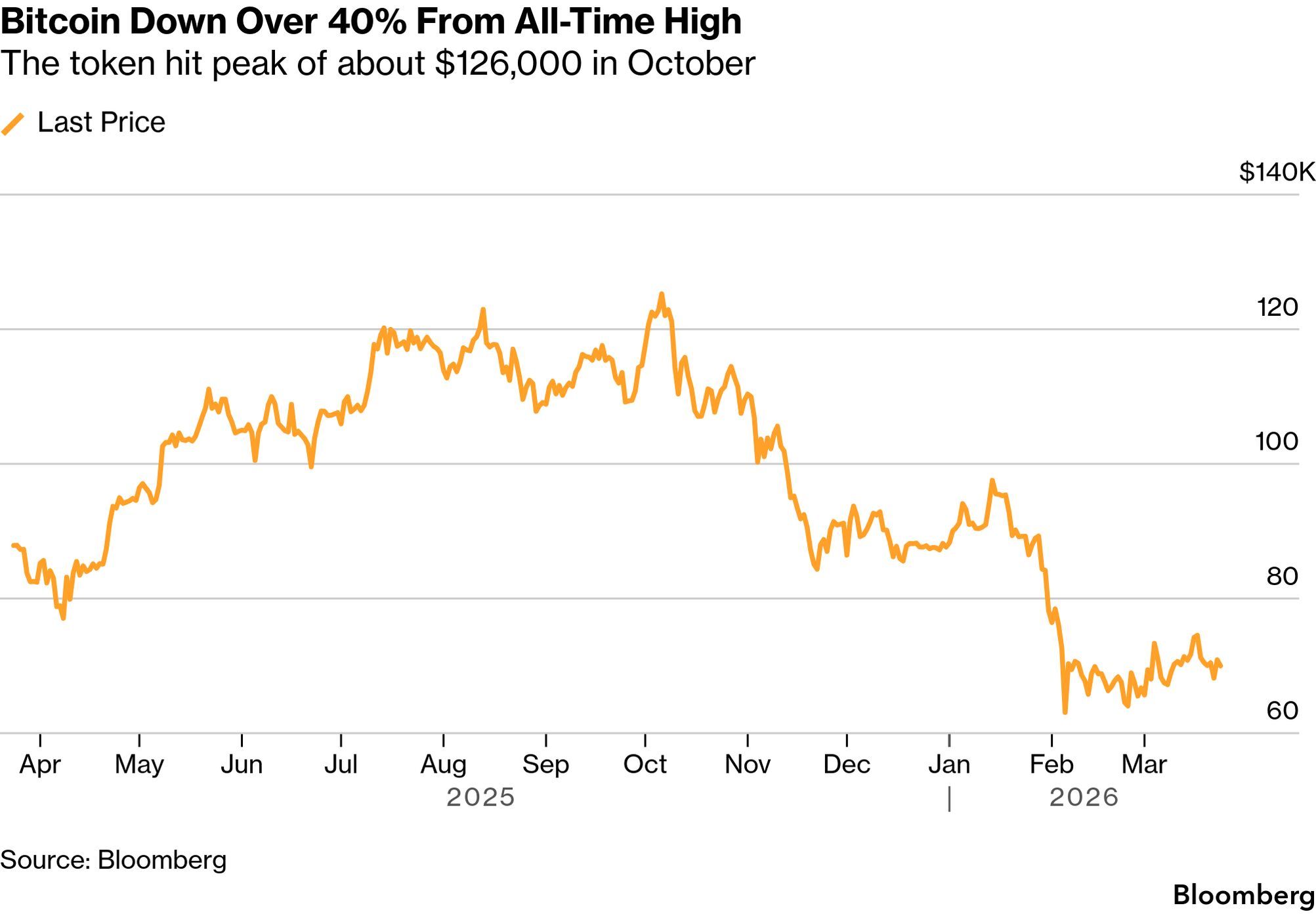 Bitcoin Down Over 40% From All-Time High (Source: Bloomberg)
