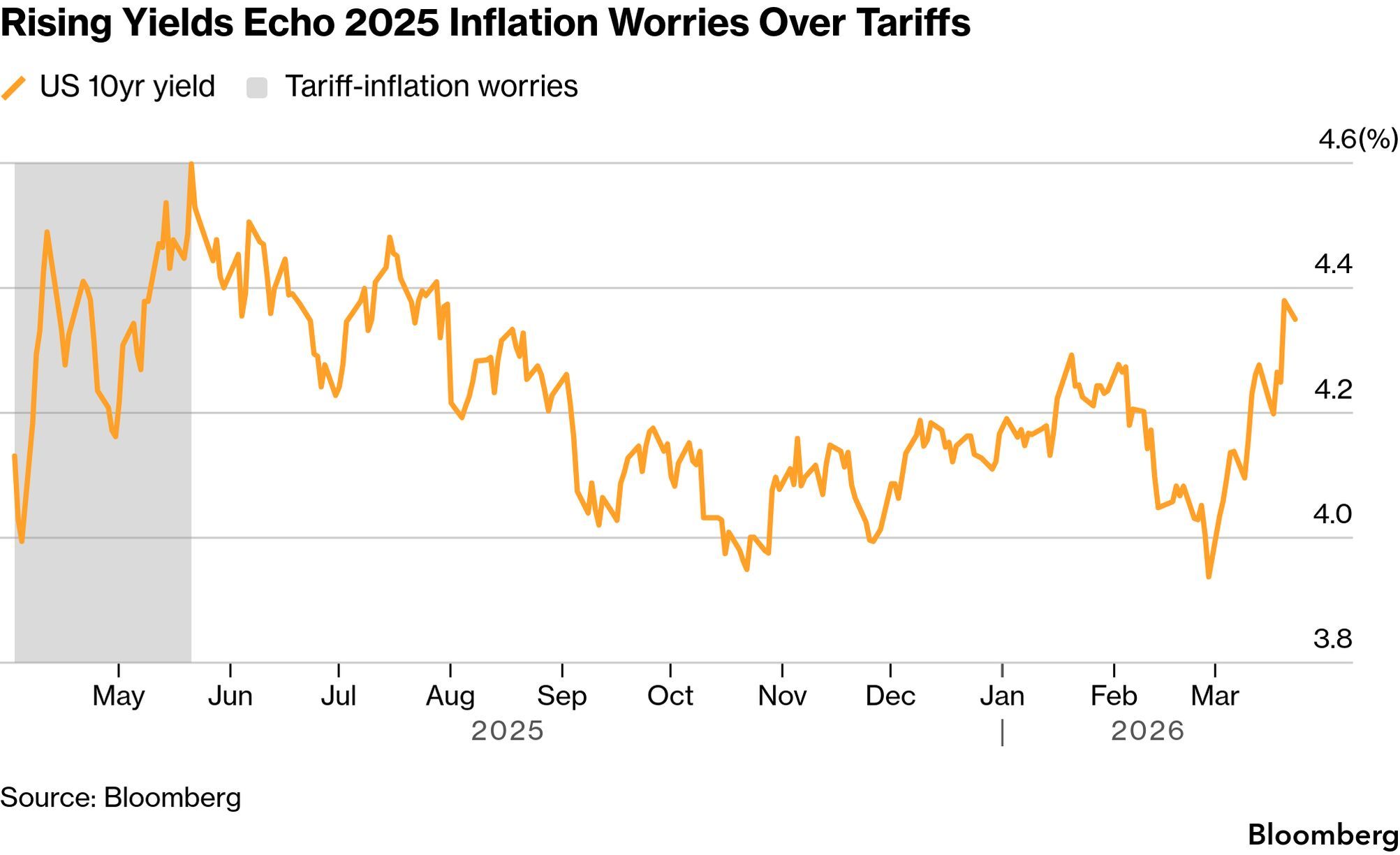 Rising Yields Echo 2025 Inflation Worries Over Tarrifs (Source: Bloomberg)